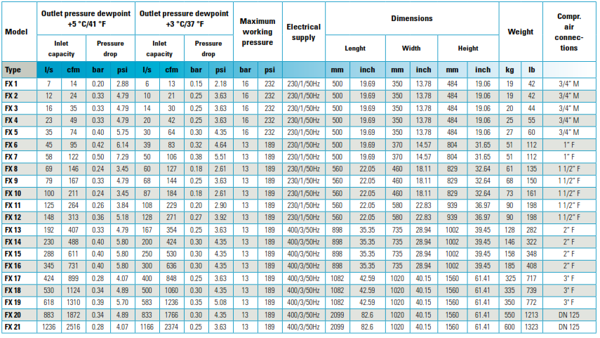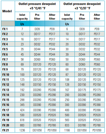 X: Refrigerant air dryers, 7-1236 l/s, 14-2516 cfm