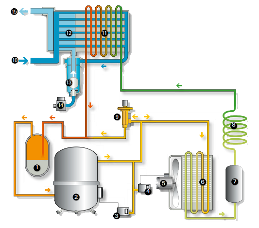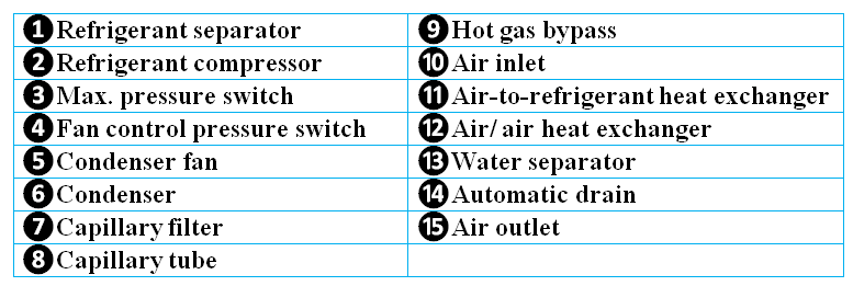 شمای کلی عملکرد یک درایر تبریدی در شکل زیر بخوبی نشان داده شده است.